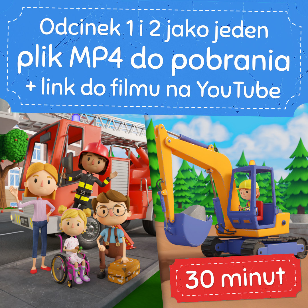 Dwa odcinki filmu Milo Mechanik tj. „Zepsuta koparka” oraz „Wóz strażacki w tarapatach” jako jeden plik MP4 o łącznej długości 30 minut – do pobrania i oglądania bez dostępu do internetu.